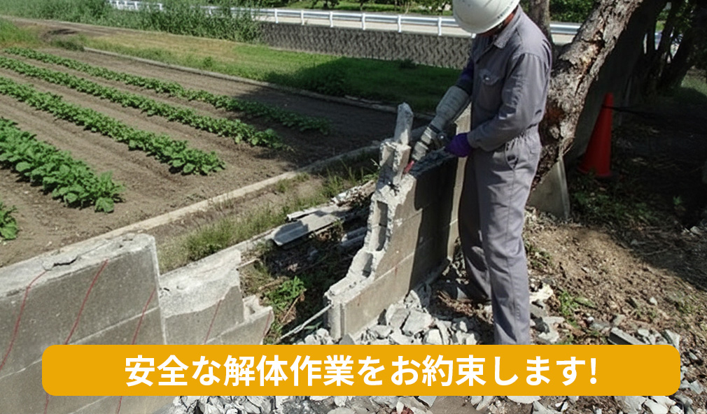 一方でプロに依頼すれば、現地でブロック塀の状態(ヒビ割れ・傾き・ぐらつき)や構造(配筋の有無・基礎・控え壁・固定状況)を確認したうえで、安全に・的確に解体撤去できます。
