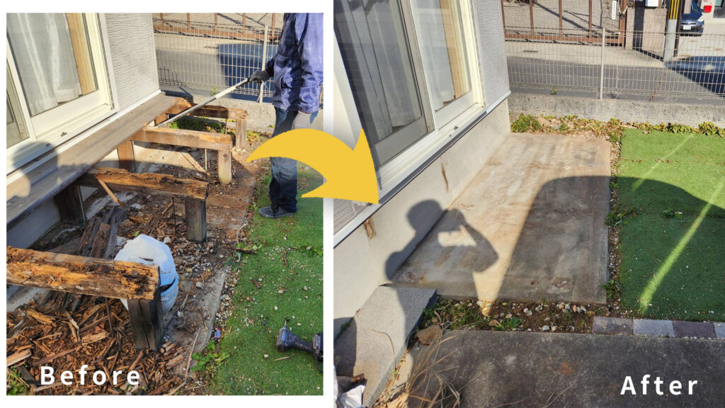 | 工事内容 | ウッドデッキと周りの不用品撤去 |